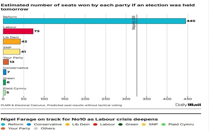 The right-wing "Reform Party" in Britain is on its way to achieving the largest majority in the House of Commons in modern political history.