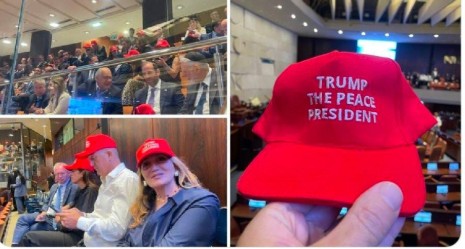 TRUMP THE PEACE PRESIDENT hats were distributed in the Knesset.